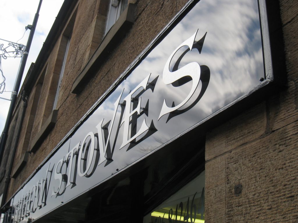This was made from butler Dibond cut-out lettering fitted to a gloss PVC panel and housed in a satin anodised silver sign frame.