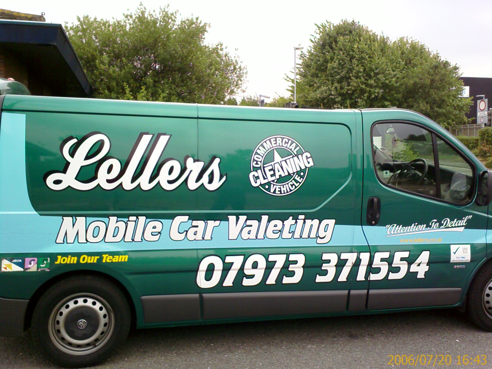 I need to know what the "Lellers" font is and the "Mobile Car Valeting". To me it looks like the phone number is in the same font as "Mobile Car Valeting". The bloke has left the Lellers franchise, so want his new company name in the same font as Lellers is now.