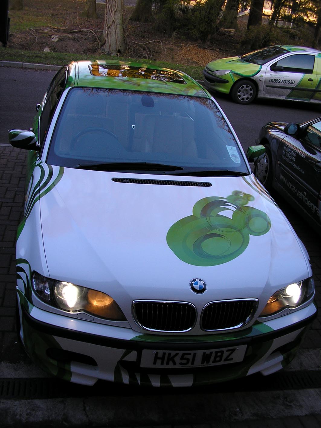 i came up with the design from scratch, using illustrator cs2, the vinyl i used was the mactac jt series, with a matching laminte, both cast materials, bugger to heat in, but it stays put when it is heated up to its req setting temp.