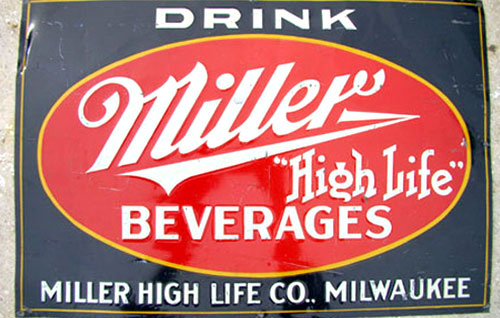This sign is an original advertisement for Miller “High Life” Beverages. It was made in the 1940s and measures 20″ x 13.5″.Vintage Tin 7up Display Sign