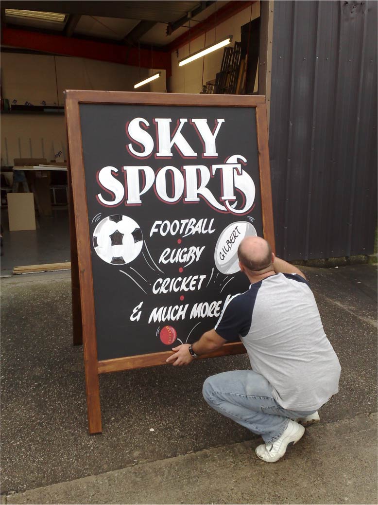 Posted by Chris.Sullivan on 28 November 2009 at 21:14Now i know that the majority of you guys on here are traditional sign-writers (i.e brush and oils) and think that guys like me ( a chalkboard sign writer) cheat cos we use posca pens (i.e chisled edges)……but i thought i`d share some of my work and see what you guys think (good or bad please)