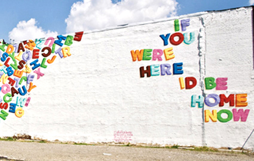 Every city needs a love letter. Some are poetic, some photographic, some cartographic, some illustrated, and some private. But few come close to the beautiful and heartening typographic murals artist Stephen Powers has been painting in cities around the world for over a decade, working closely with the local community to give breathtaking visual voice to a neighborhood’s narrative. As a longtime fan of his work, which I first encountered in the Brain Pickings birthplace of West Philadelphia years ago and which appeared in Sign Painters, I’m thrilled for the release of A Love Letter to the City (public library) — a magnificent monograph from Princeton Architectural Press, in which Powers takes us through the creative process and cultural context of his murals spanning Brooklyn, Syracuse, Coney Island, Philadelphia, Dublin, Belfast, São Paolo, and Johannesburg, based on a combination of Powers’s own ideas and overheard snippets, fragmentary thoughts, and everyday aspirations from members of each local community.