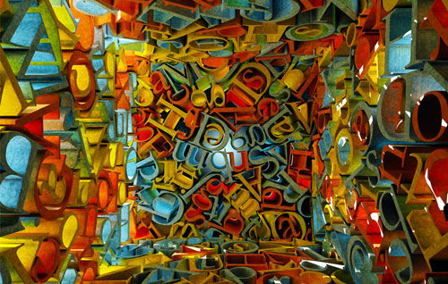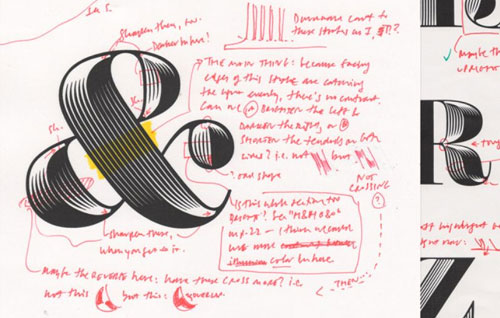 The first font to get this treatment is Obsidian, a decorative, three-dimensional font inspired by the ornamental look of old maps. To give the font a contemporary feel, Clymer and Hoefler began with a popular type called Surveyor, and built Obsidian using its preexisting structure. Then they designed an algorithm which would rapidly light the 3D typeface and create the shadows necessary to show dimension. Because Obsidian was created in a virtual environment capable of simulating light on any letter in the set, the designers were freed from the task of painstakingly drawing shadows on each character. "[Obsidian] is sort of computationally driven, it really has that kind of texture and dimensionality," Hoefler says. "For us it’s a whole new way of thinking about letters as a generative process."