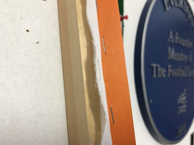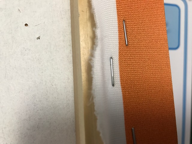 This is a fabric covered board. Looks like a polyester fabric material but not thick like canvas media but slightly thicker than flag material, somewhere in between. Needs t be printed on a solvent printer