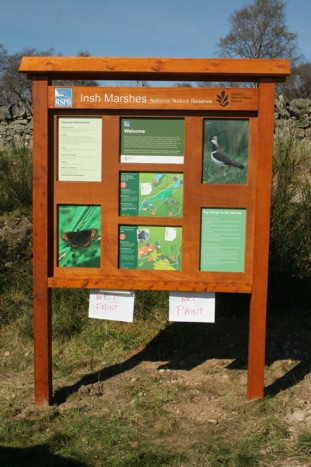 Bear in mind you are only putting up relatively small signs so a bag of ‘Post Fix’ per post, from the local Wicks/B&Q will be more than adequate. Stand the posts on a pieces of brick/stone in the bottom of the holes before you pour the mix in that will allow any moisture that soaks down the edges of the posts to drain right past the bottom of the post