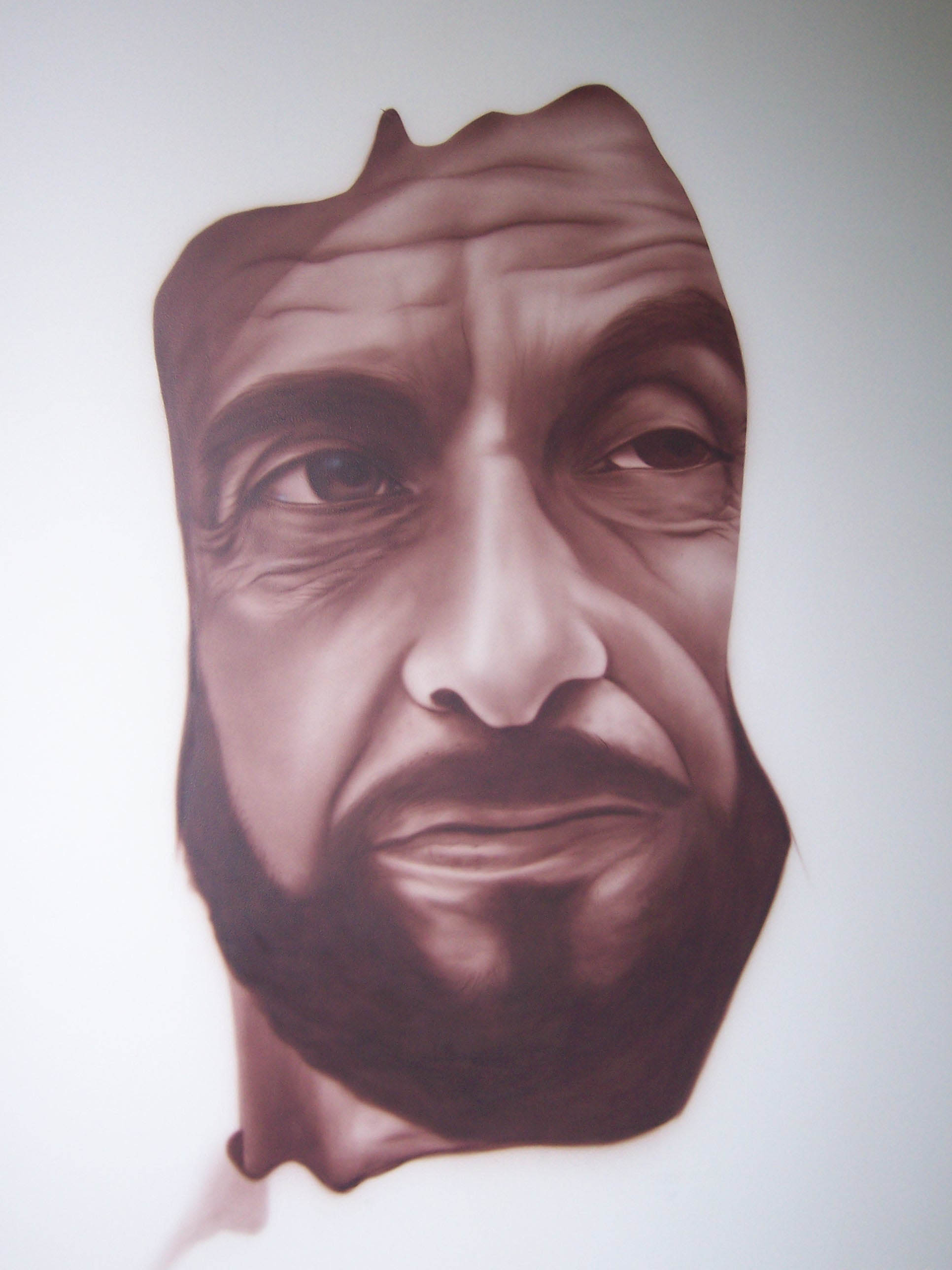 thanks you nice people, anyways to start with i source a good pic, and its important to have good pic, the photocopy onto clear film and project on to the wall and get the airbrush going and “dust” in lightly the proportions and positioning of the main lines etc, then i go layer again doing the medium tones and slowly build it up into the dark tones and fine lines, its basically a lot of layering, studying the photo and sitting back then going in and layering until you are happy with it, if it takes too long i start getting impatient and not fussing too much, i want this to be good as prince Michael whatever he is and a sheikh from Dubai are coming to our school for grand opening this Monday and it will be a lot of media coverage. i took step by step photos and will load them when i figure it out and finish the pic, hopefully tomorrow.