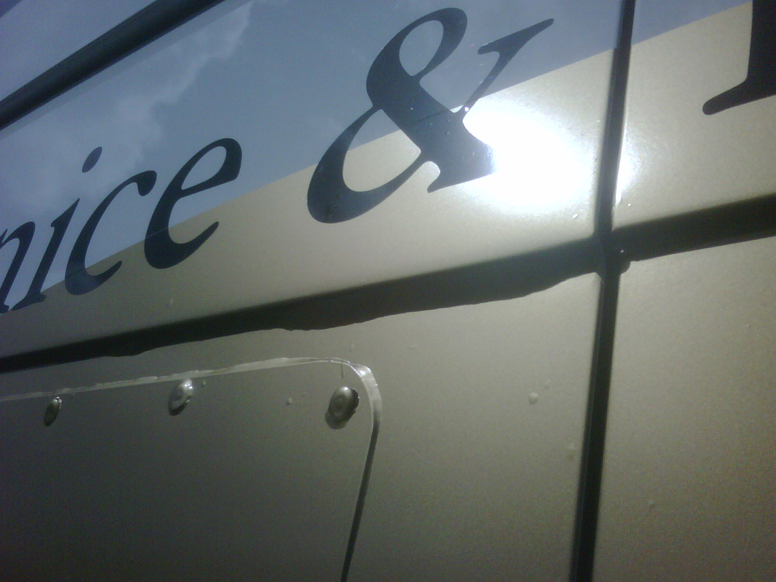 We both had a walk round it and believe me the other side was worse, at the recess it had obviously popped before he had even finished the van so he just cut a slice out. Butchered it.