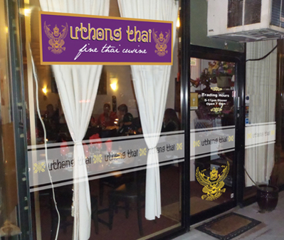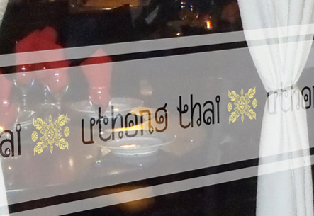 Ive designed a frosted strip with a gold emblem inbetween the cutout of the restaurant name.