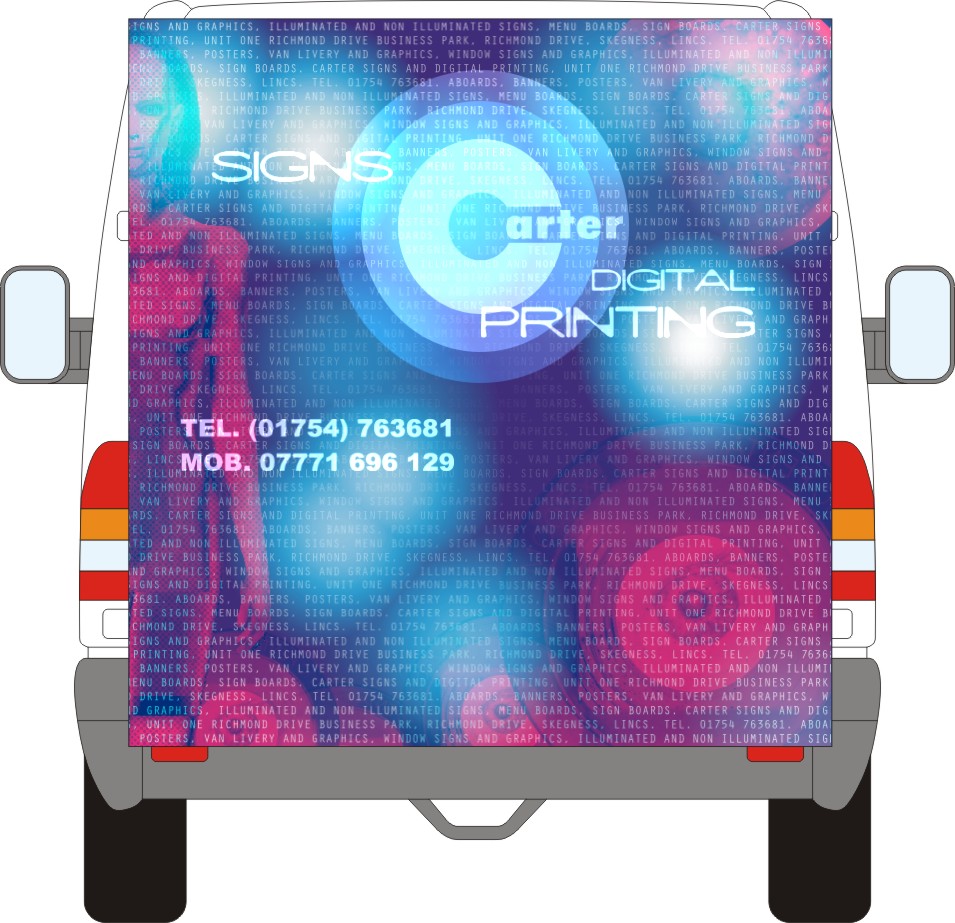 Home › Forums › Sign Making Discussions › Graphic Design Help › Backdoor Van Wrap. Design advice needed