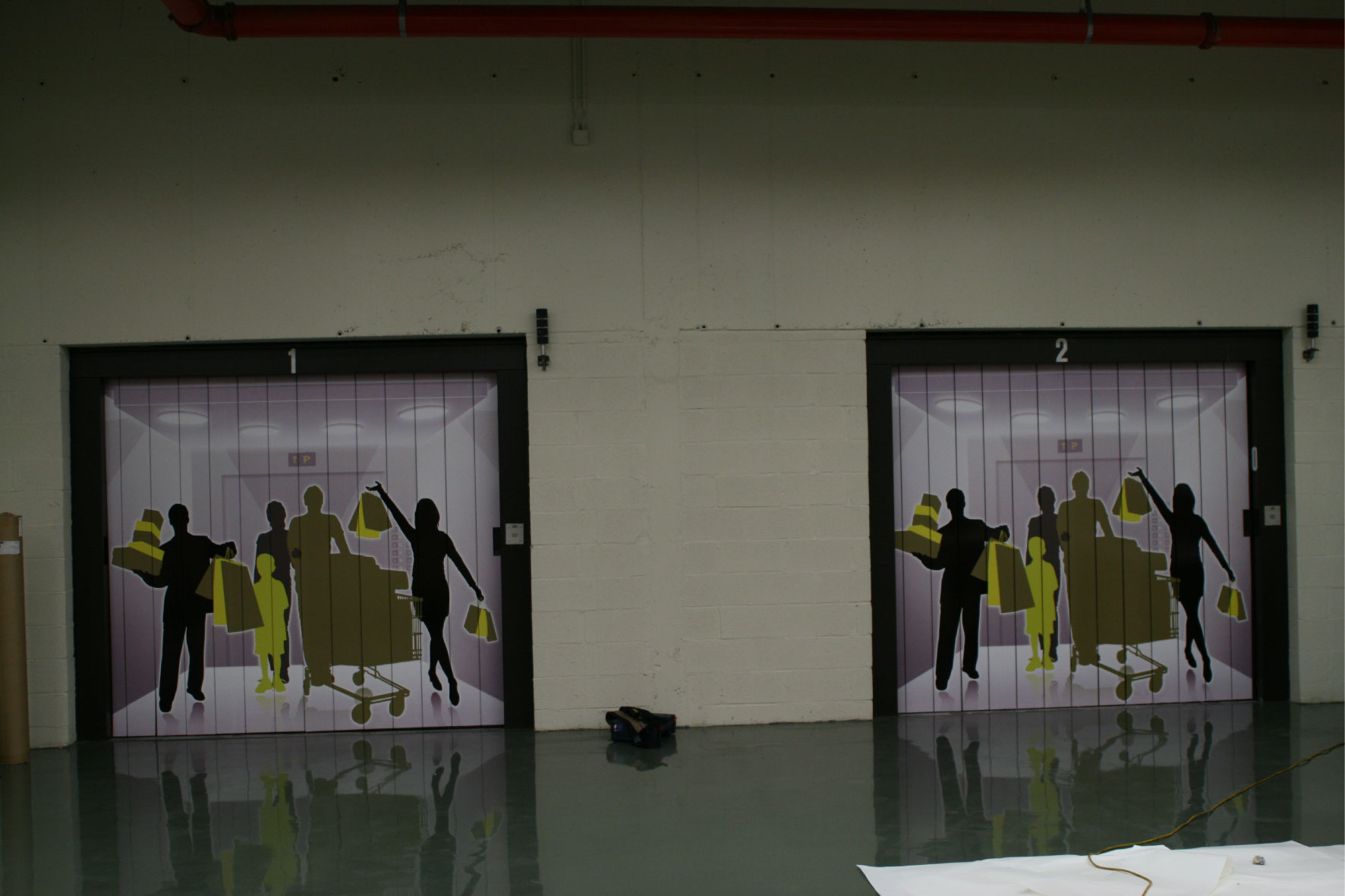 the first is an elevator, actually 3 (although i only gotten two in the picture), briefing was short: make our ugly elevators more appealing to the costumers, give it a family appeal.