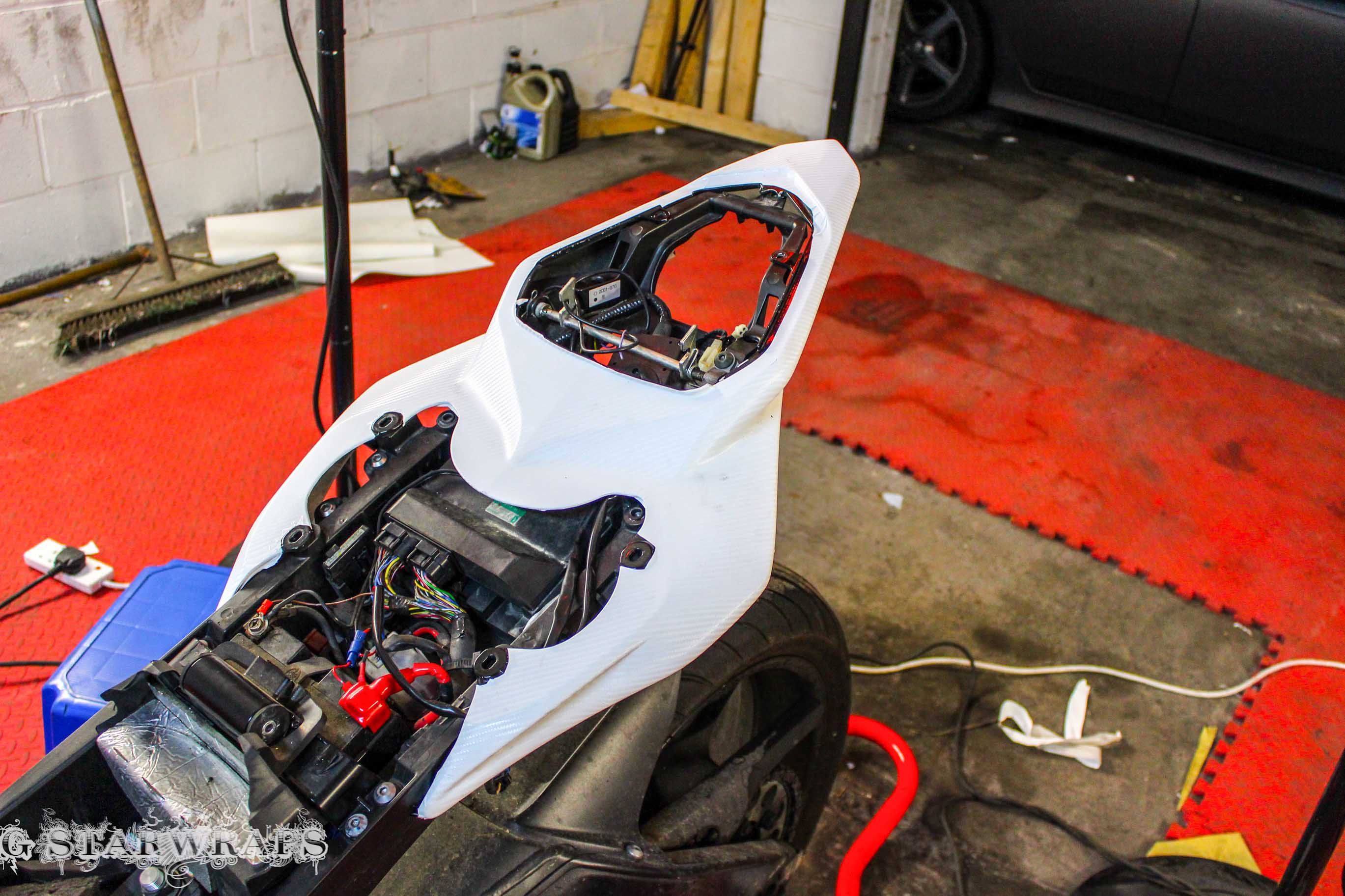 in Picture 5 you are showing multiple joins on the white in the recesses below the handle bars. this should really have been wrapped in one piece, the front mud guard too. I am guessing the bike was not stripped down for you, but still.