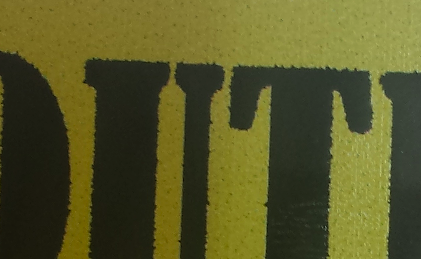 Got a load of vinyl to print, consisiting of a lot of black lettering on a yellow background, artwork from customer. I have checked – the black is 100% and the yellow is 100%. The two colours are ajacent. However the black edges seem to be running into the yellow and forming an ugly edge.