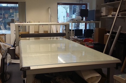 Graphic applicator table it has saved us hours and reduced reworking dramatically. Roller 1600mm wide and in good condition. Bed size 3500mm long x 1640mm wide 2 piece glass on the table top, cutting matt replaced the end of last year and in good condition.