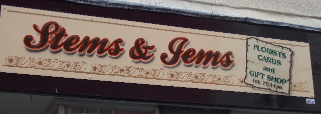 Jems is a ‘craft’ term usually meaning or referring to hand made jewelry. Stems of course means flowers 😉