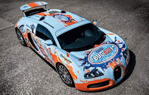 Managing Director Richard Clark said; “The BugARTi Veyron project is a magnificent one off, on one hand we have a car worth an untold amount of money and on the other we have a mad scientist artist who uses remote control cars to paint with. These two meet and the result is a spectacular wrap that gives the Veyron a completely new identity using the classic blue and orange of the Gulf Le Mans cars. We are confident that some jaws will drop at the show.”