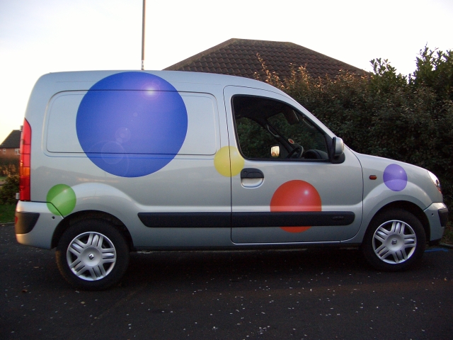 All the circles were printed on Graphtec Cast vinyl.First time i have used it and i have to say it was very easy to use.Applied the vinyl in the normal way, working on the large flat areas and then working the vinyl into the contours with a heat gun. The contours on the kangoo are shallow so not to bad to do.