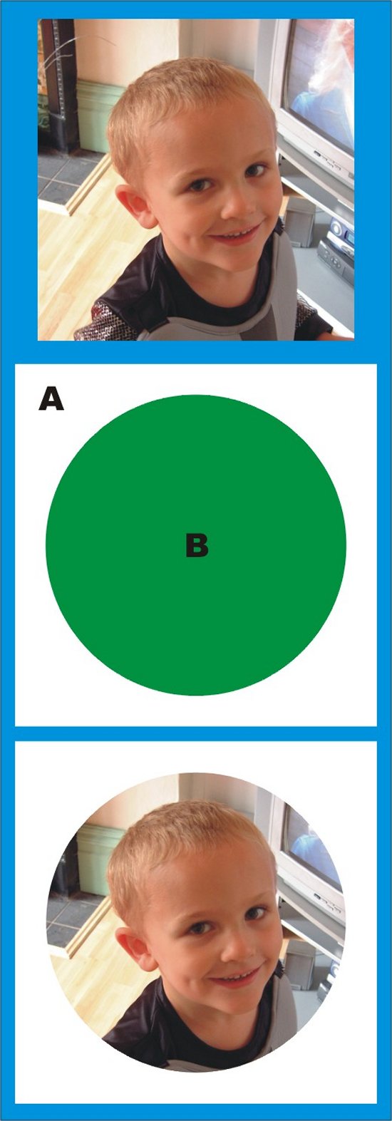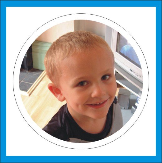Now change the colour of the circle to clear, make the outline black (or as Nik suggests magenta) and you have a cutline that leaves you with a circular photo with a white border. Does that all even make sense?