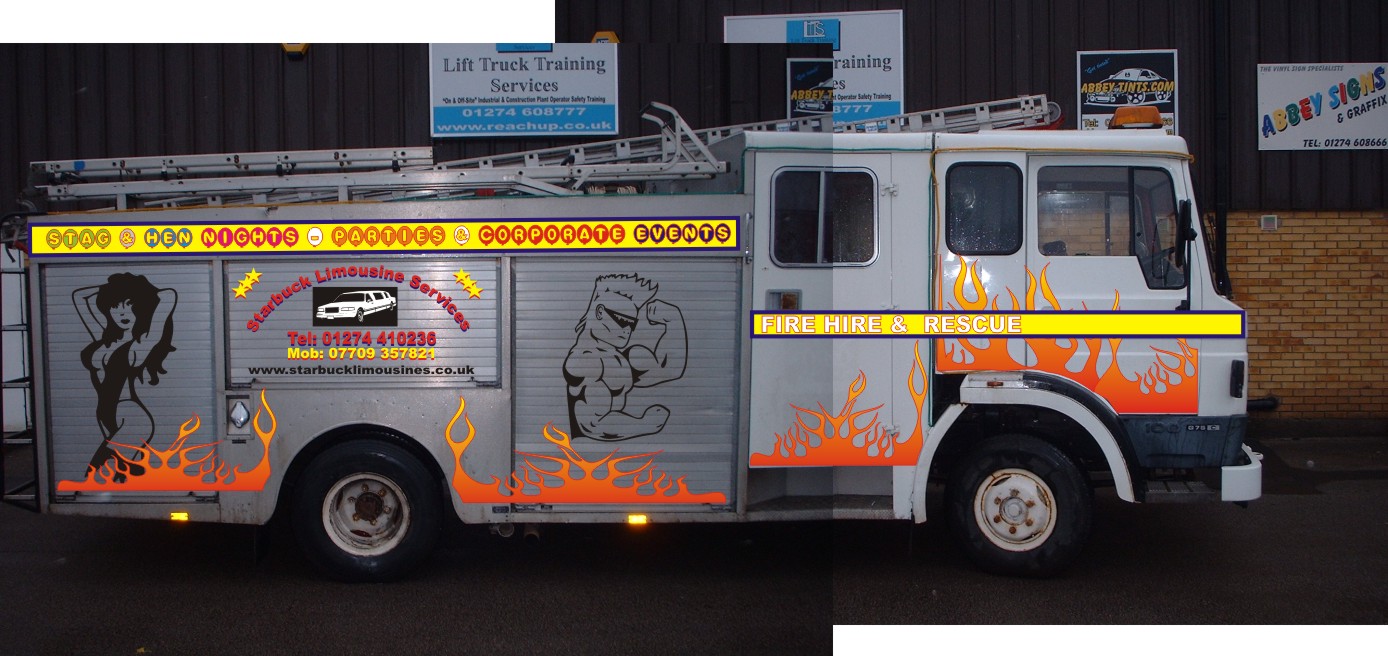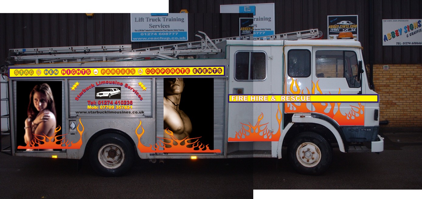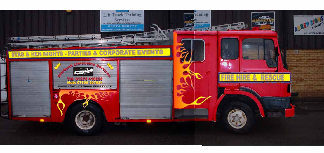 Anyone insane enough to hire a fire engine for a stag do, or hen party, they’re going to want it to be a laugh at the very least. You could try tiger stripes, or even cover it in fake fur! 😀 Question the sanity of the owner, and see how far you can go. If he/she wants something that’ll grab the attention of your local area and beyond, suggest some wacky ideas and if he/she goes for it… well, you’ve got something that’ll be a PR coe for him and a portfolio show piece for you! 😀