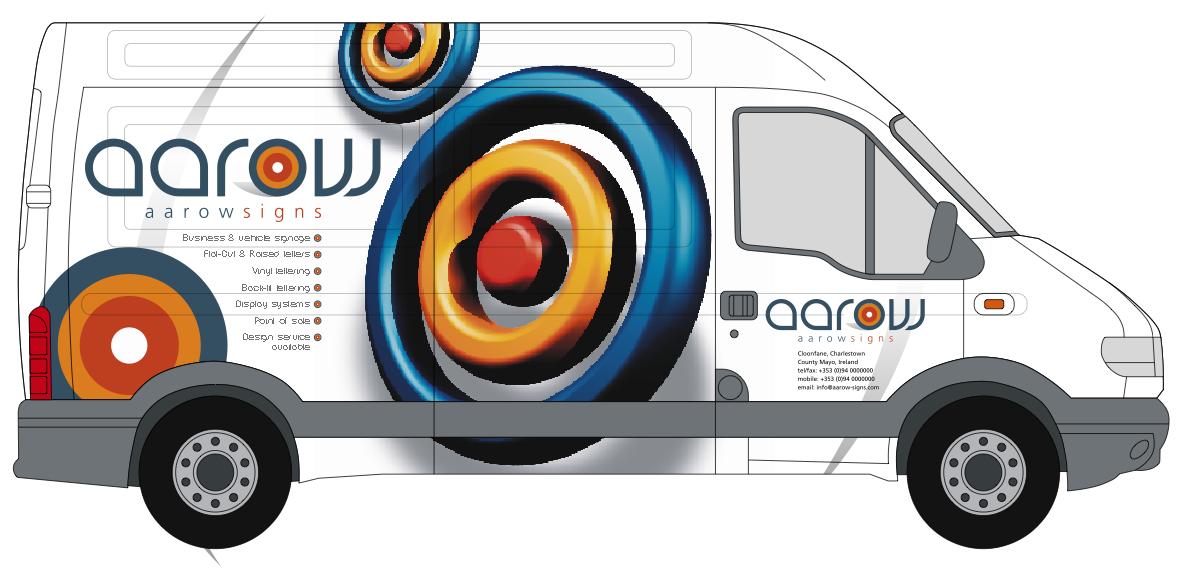 I would still get rid of the text duplication of the word Aarow, and lose the flat version of the logo still present right at the back of the van sides… but just personal opinion!