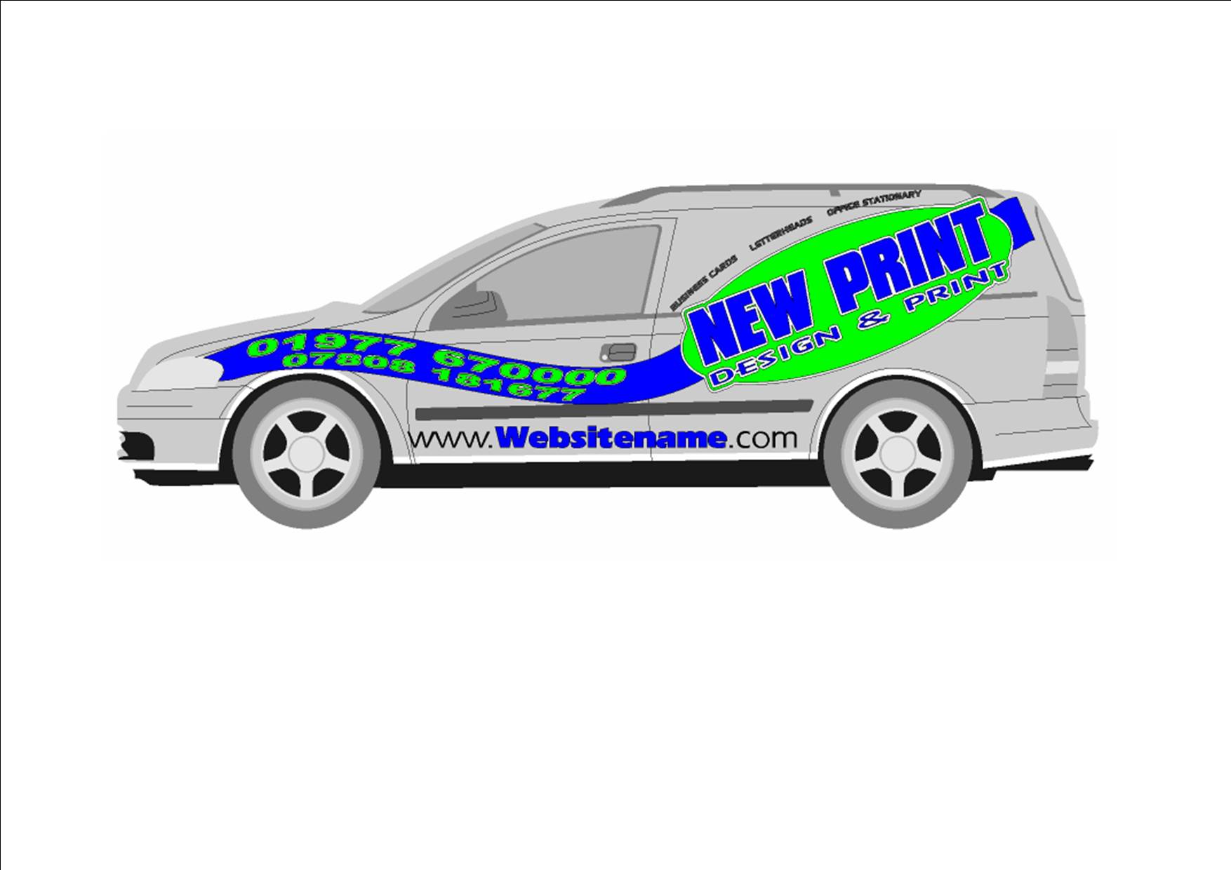 The company name is New Print. They do business cards, letterheads etc and they have a new shape Astra Van which is silver.