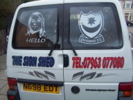 Now Chris, You certainly wont be getting a slating from me for that one. That is very nice I like it. I like the way that has come out. It is simple but really effective. I have 2 panels on the van one of which sais the sign shed and the other with a list of what I can do. I like having the list as I do boot sales and markets to take the signs to the people sort of thing and some people like to see what you do then ask, Rather than approach you and ask. So I could have something like that covering one panel and also have it as business cards and letterhead logos.