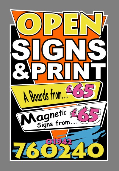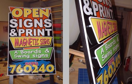 Looks really eye catching Dewi, I would agree with Jill though – £65 for an a-board sounds a little too cheap to me (you gotta get your £100 of vinyl paid for remember 😉 ) You can get away with advertising magnetics cheaper than this too – cos you can always say thats for a pair of 2’x1′ signs of whatever size you can afford to do at the cost you choose.