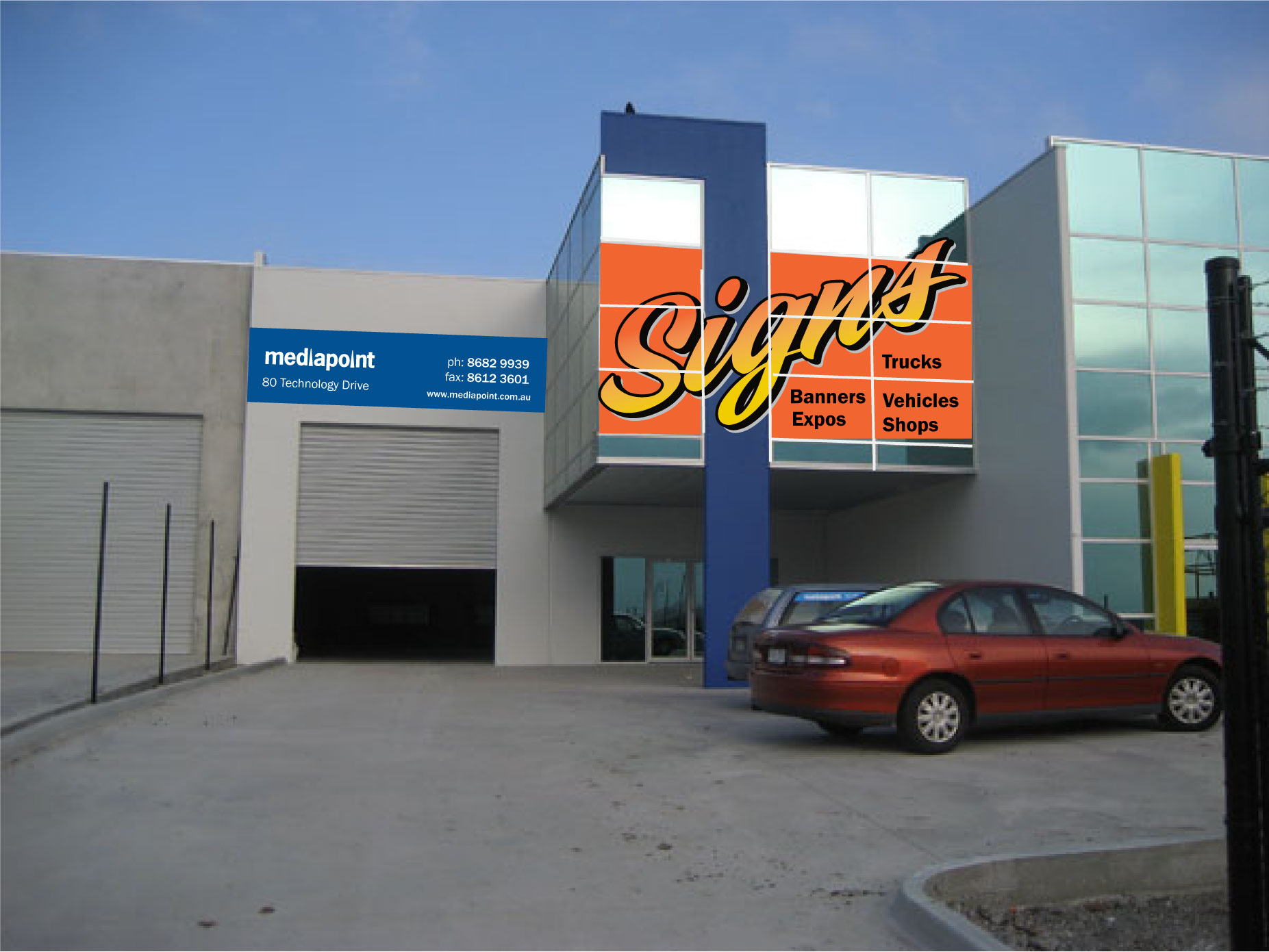 Our company name is Mediapoint. It doesn’t say what we do so I basically want to eliminate for people driving past. I’ve carried on the theme from my brothers window perf for his wagon.