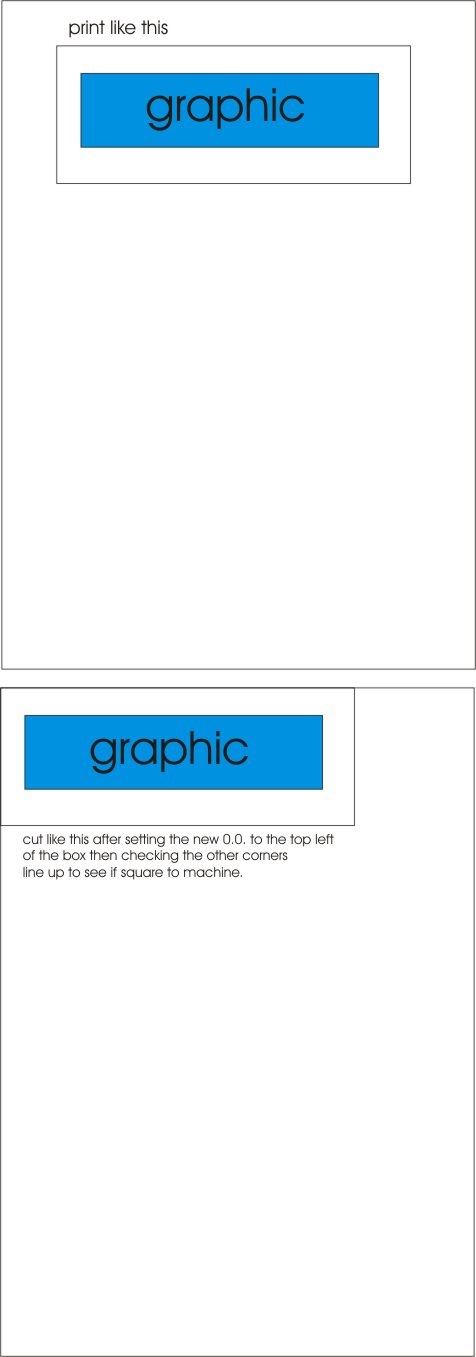 print 2 cross hairs the top left one is then set to 0.0. the other one is check only that you have the print in square.