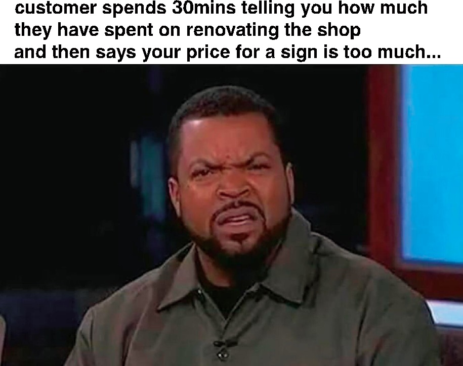 Got referred a customer from one of our trade customers, quoted for their van signs… got told they didn’t have the money at the moment.