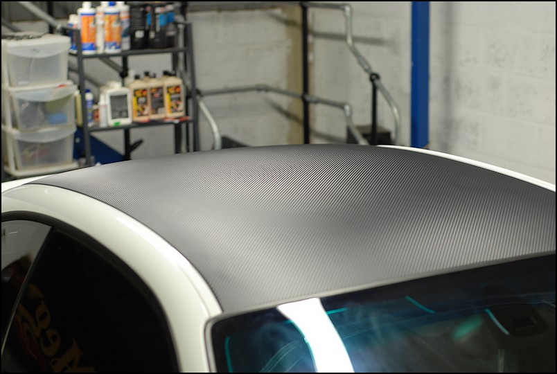 This is an E46 BMW M3 one of only 10 UK cars that came in alpine white so finding a white one is very rare. The owner has also fitted a number of real carbon fiber parts so the challenge was to find a product that gave him a roof to match. In this case we didn’t go for a printed c/f but sourced 2 meters of 3M to do the job. In reality we had enough left to do some other ancillary parts for him such as mirror caps etc.