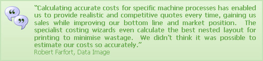 Clarity Free Edition contains a great entry-level set of functionality for new businesses and can be downloaded totally free from our website right now. Visit: http://www.clarityfree.com Note: Clarity Professional is also available to purchase with or without support. All Clarity products link to Sage Instant Accounts at no extra charge (Clarity Professional links to Sage Line 50 at small extra cost). If you start with Free Edition or Lite Edition, upgrading through the Clarity product range is simple and seamless as all of our databases are data compatible.Accurate Sign & Display Costing