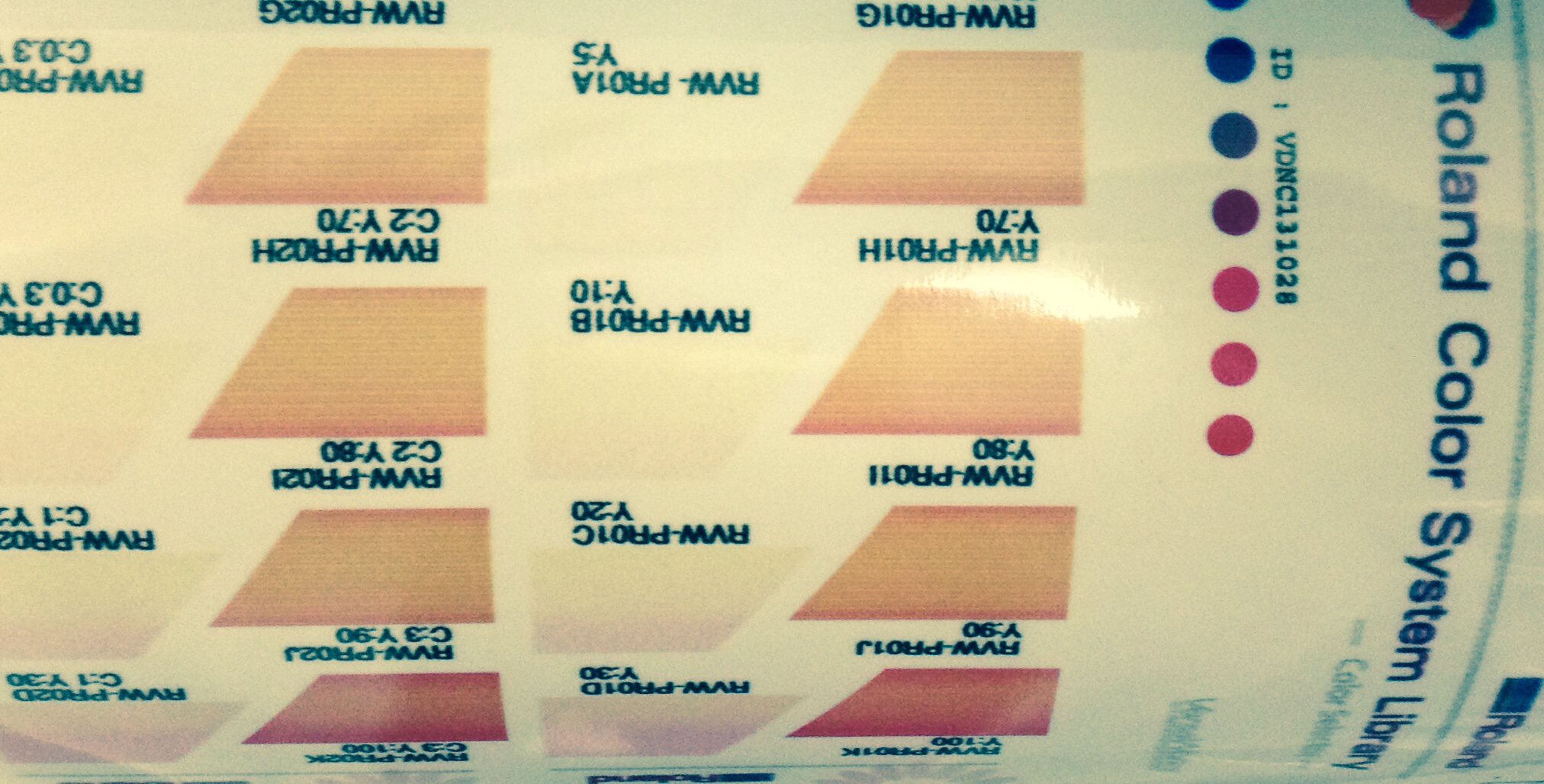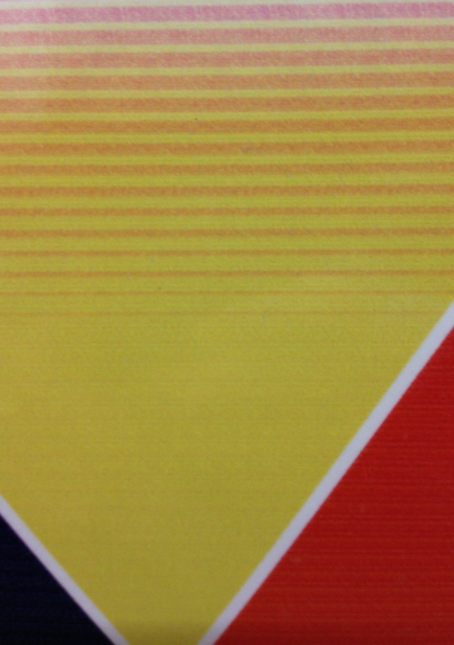 After having problems with cyan and black contamination we are now printing a strip of 100% colours before doing a print to balance everything out but now we are having s problem with magenta striping in blocks of yellow colour. Generally starts off ok and will get progressively worse and then ok again. It seems to be cyclical through the print. The inks are all level in the reservoirs and it looks better on high quality although it is still evident. If anyone can suggest anything we would be very greatful. I have included a photo to show the problem.