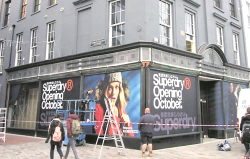 One of the newest additions to Cork’s main thoroughfare has caused controversy before it has even opened its doors because of the works carried out on one of the city’s most iconic shopfronts. International clothes retailer Superdry has been the source of complaint after it painted over some of the facade of the old Moderne store on St Patrick’s Street and covered the famous building’s distinctive sign.