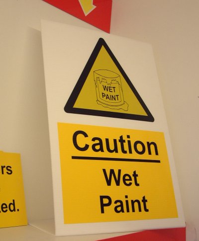 I ment to post these ages ago and I was taking pictures for my website, so I thought I’d post them now 😀 Nothing overly special, its the correx signs done following Robert’s demo with the Plast-Kut. I do a whole range of them now, but the 2 most popular I display in my shop. They stand 600mm tall, and are 400mm wide with a 200mm base. To make them freestanding, I use the VHB green tape and a tidgy bit of correx. They take about 10 minutes to make as a one off, but when you’re making a dozen or so, you can make them much more quickly.