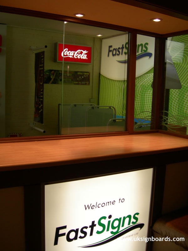 the picture below isnt the best as its taken from inside the reception office. but you can see the back illuminated wall?