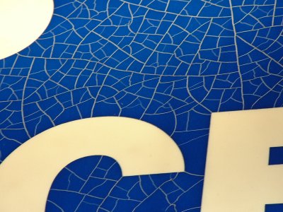 Anyway, I’ve been asked to resurrect a light box. The existing acrylic doesn’t look in bad nick, but I’ve never seen vinyl like pictured below. I’m presuming its what happens to vinyl with age, rather than it being designed that way.
