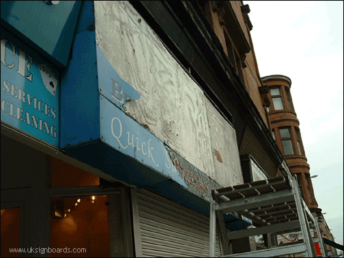 Early this year we got a job for a light box for a new takeaway. We thought it would be a simple fit onto the old frame. When my stepson set the scaffold tower up, upon inspection the frame had rotted too badly. He had to argue with the owner who insisted he fit it, he kept on saying it’ll be alright. It was only when he climbed the tower to see it falling apart when grabbed by the hand. After much shouting the customer paid for us to pull the old facials down and replace with new timber, cost him another £500.