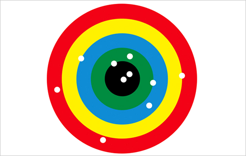For the Design Museum exhibition, the recognisable graphic shapes and typography have been reinterpreted with different colours, patterns and materials.