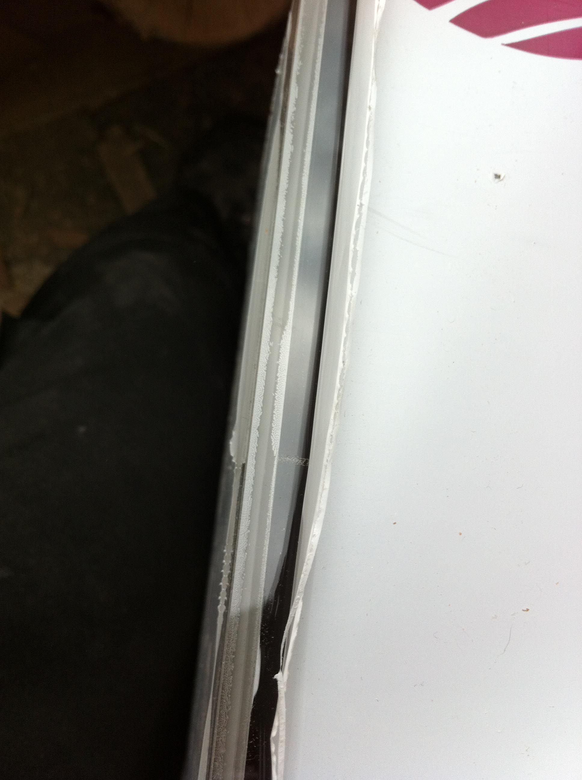I am trying to make some clear display cases using PK1 solvent adhesive and 6mm acrycast acrylic, I am routing the edge so it is nice and smooth, but when I apply the solvent I am getting a crazing around both edges of the but joint. The middle of the joint seems perfect and clear!