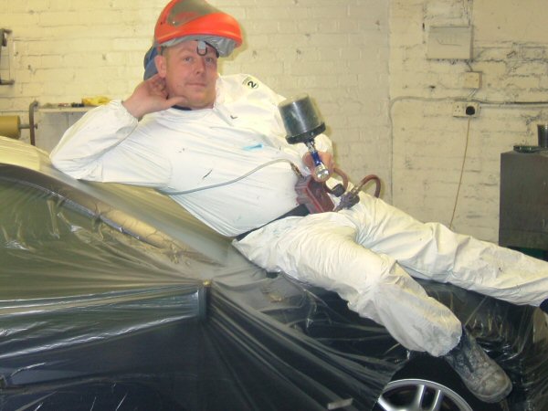 Has anyone got a printable photograph image of a man holding a spray gun for painting. Its to go on the side of a Car Body Shop.