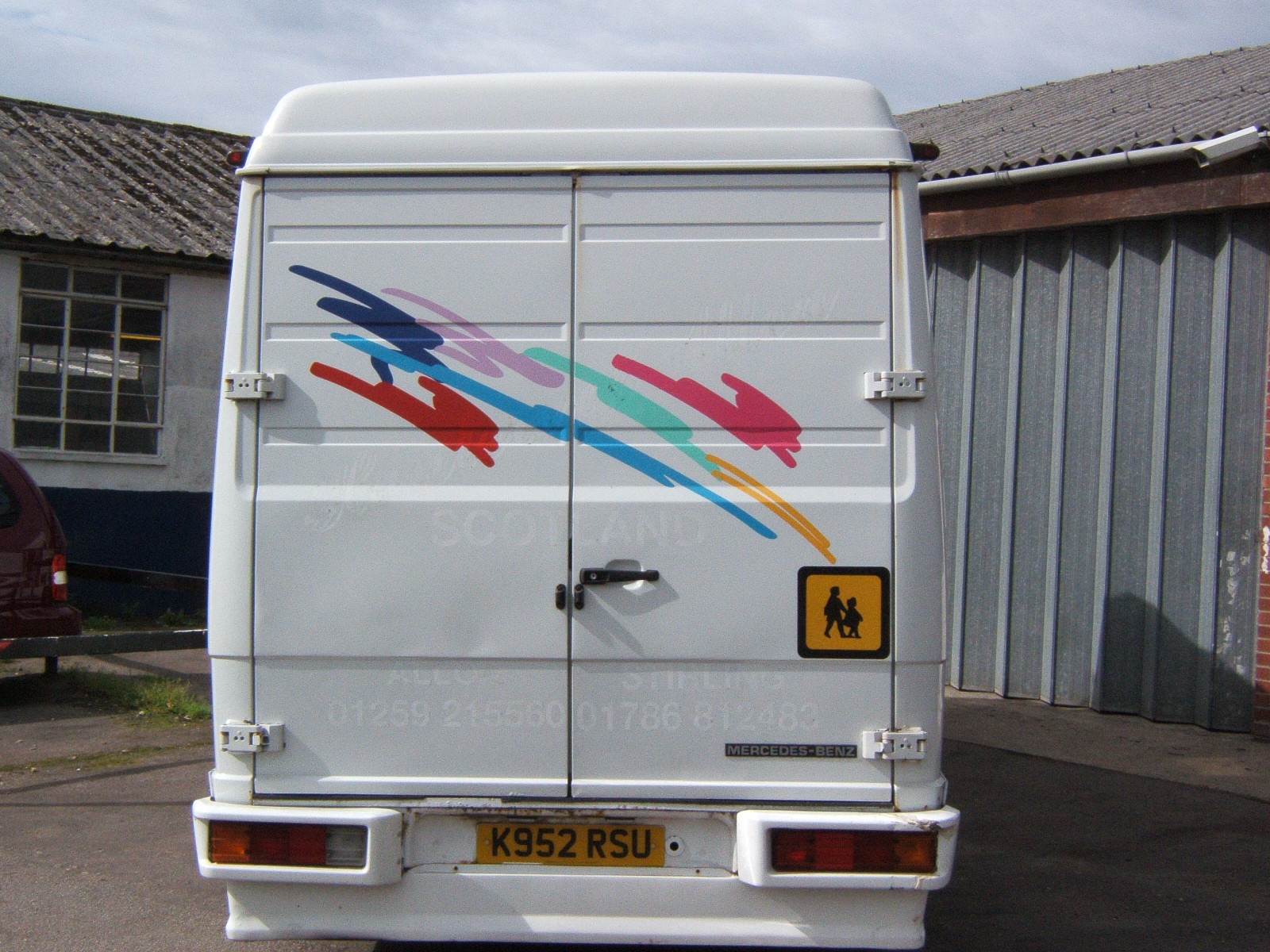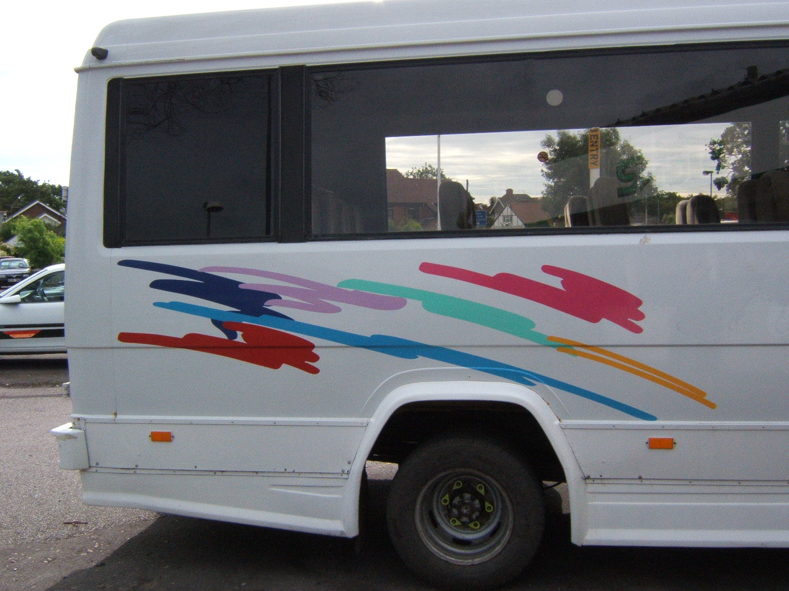 Posted by Lorraine Clinch on 11 September 2006 at 11:16This mini-bus has made it’s way from Alloa to Norwich, the new owner wants to keep the ‘paint splashes’ (vinyl) but is having 1 side & the back resprayed.