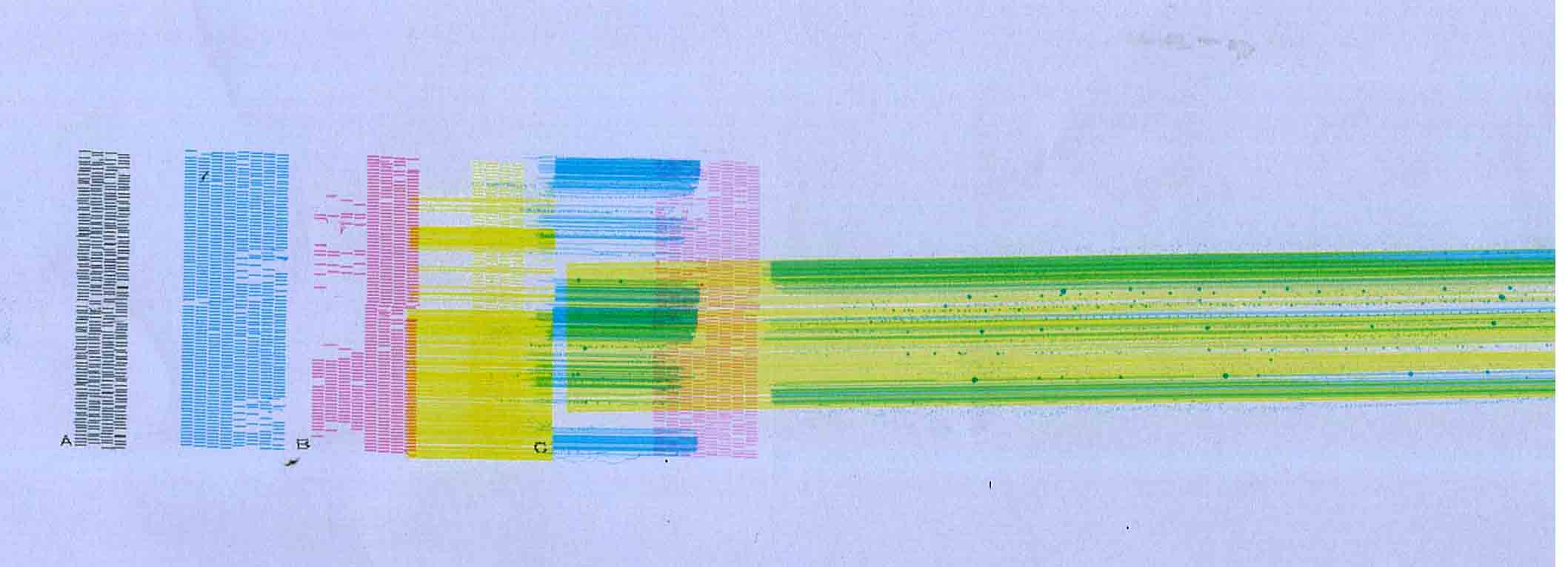 Posted by Chris Sullivan on 4 March 2011 at 21:06Can anyone help? Trying to get printer going after a short layoff. When i print a test print one of the colours just prints a block of colour and a band of the same colour for the width of paper upto the test print if you know what i mean. In other words if my test print starts at far side of media there will be a band of ink the whole width of media. I will play abit tomorrow, but am wondering if its time to put machine to rest.i’ll post a photo if it helps. Much appreciate any feedback.