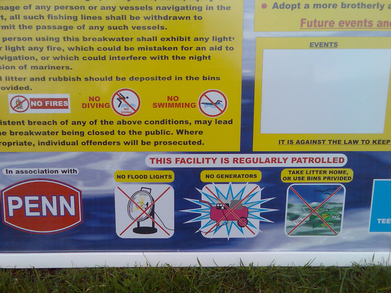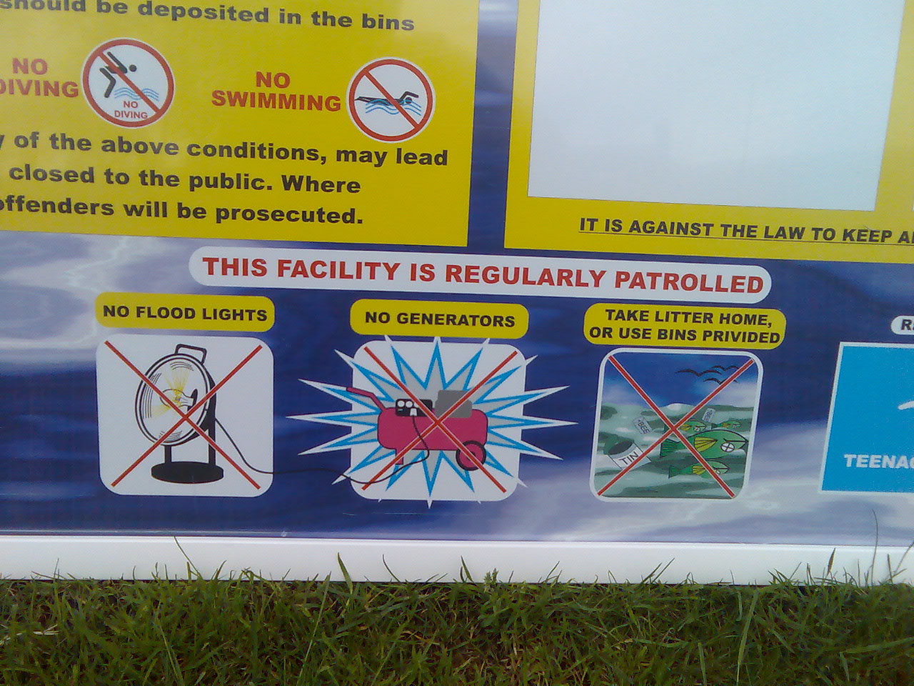 basic layout was supplied by the customer (word doc !) so everything had to be vectored, logo’s and all, some of the images weren’t suitable for vectorising, so i made my own floodlight, generator/compressor, and no litter/dead fish thing, oh yeah, and the swimmer and fire !