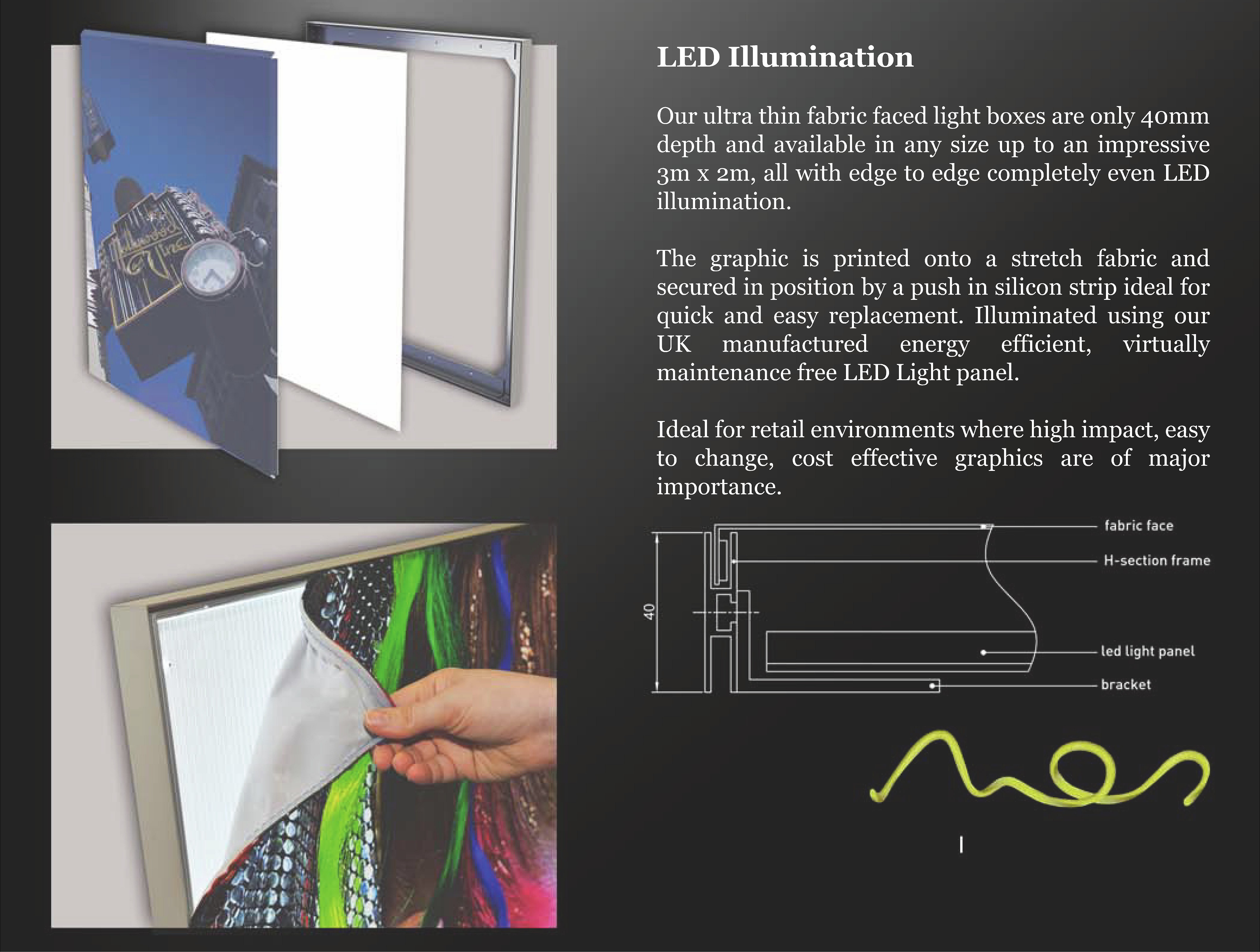 Just wondering if anyone out there might have printed & fitted stretch fabric with silicone edges for fitting into a NES 40mm H section – Ultra slim LED light box?I have contacted NES directly but they are very unwilling to part with the information unless I buy the units from them!!