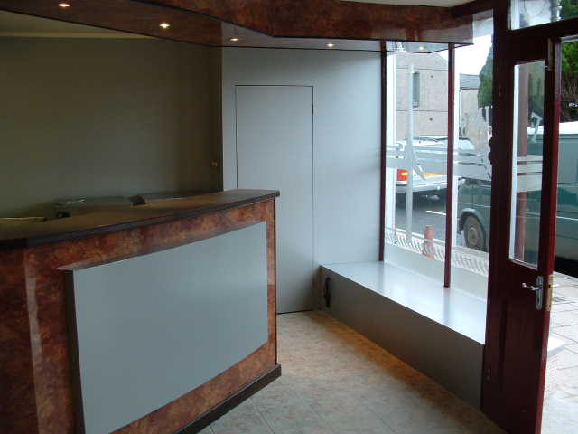 Another view from a slightly different angle.We also done the reception side in cream Dibond with a silver window sill as well, but the seating hadn’t been fixed when we left the site and would not have made a good photo. I will update next week as we will be working close by again.