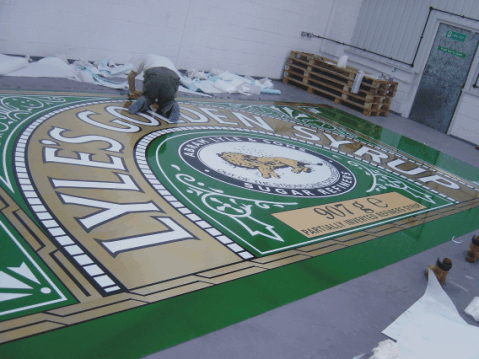 Posted by Adrian Neill on 25 May 2006 at 08:33We were asked by Tate & Lyle to produce a replica of there famous Golden Syrup tin, to be mounted on the side of there building in Docklands. We were quite surprised when we started assembling the ‘tin’ as to how BIG it actually was !! 😮