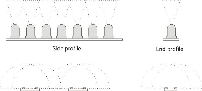 about the light dot, because of the viewing angle, you can’t really pinpoint where each LED is, unless it is totally solitary.(that is assuming you’ve placed them the correct distance away. obviously)