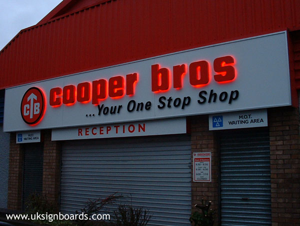 Factory fascia sign: LED’s + built up letters.