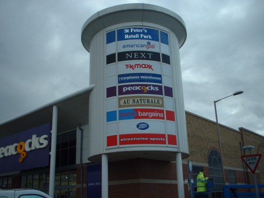 hi chaps, the panel was a 5mm opal acrylic sheet covered in vinyl, pretty hairy as it was quite windy and 50 or 60 foot up.