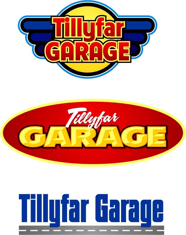 I am trying to design a logo for my family business as normal my mind has gone total blank! worse when its for yourself. The name of the business is Tillyfar Garage. we do body repairs and recovery. my brother has got some ideas of what he likes. he wants it easy to read no script. simple shapes to show a road or a road with a field. maybe threw the the font like f or the y. colours would b blue with yellow or red with yellow. but any ideas would be nice just to get me started